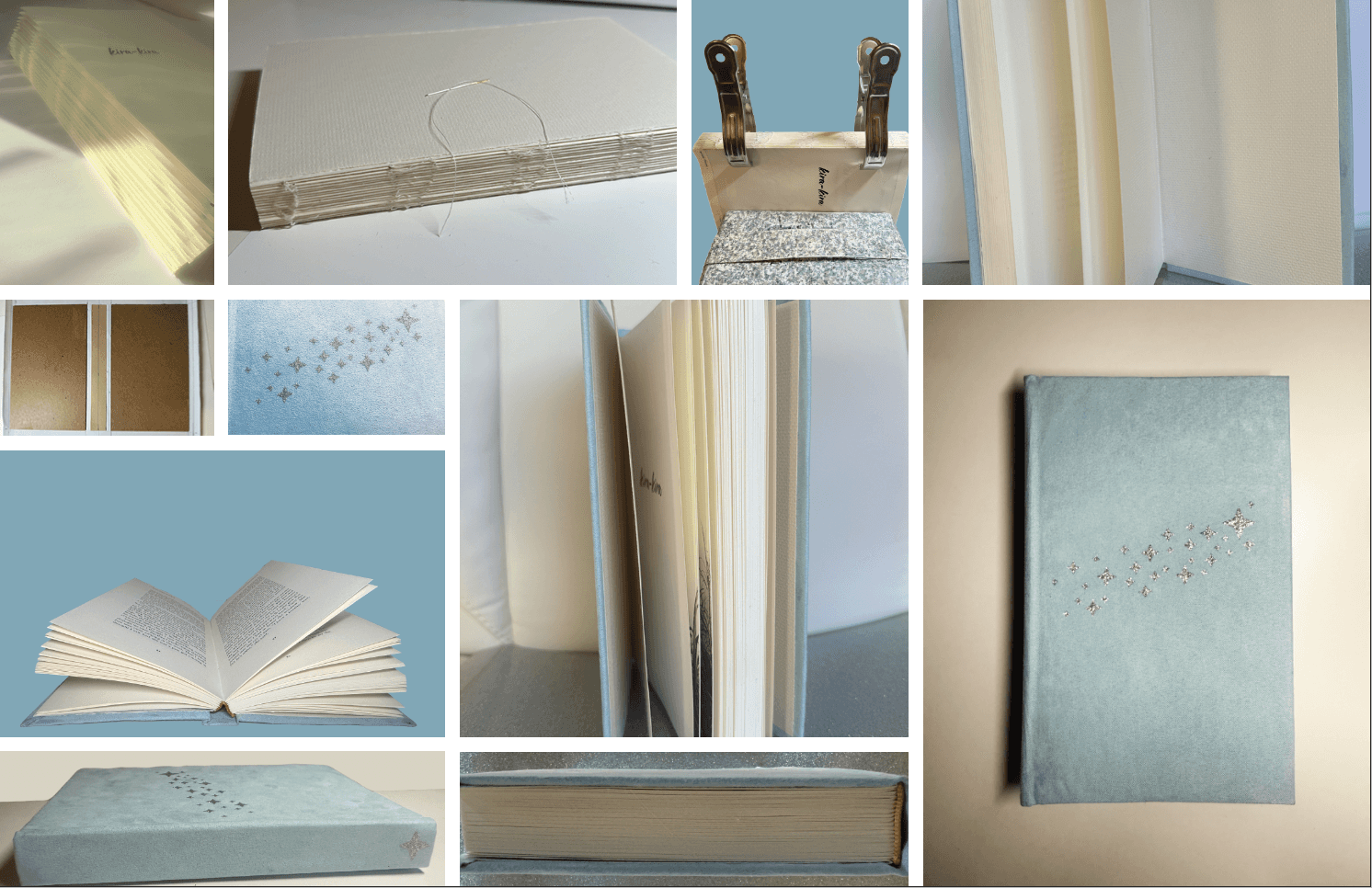 This past fall, I took an intensive Book Design course, where I took one of my favorite books, Kira-Kira by Cynthia Kadohata, and completely transformed the book from inside and out. I reformatted the complete manuscript in Adobe Indesign, developing a refined typographic system, grid, and chapter openers supported by my own illustrations. I ensured the file was print-ready, managing styles, photos, and long-document workflows. Beyond the inside design of the book, I was in charge of the physical production of the book. I chose Neenah Classic Crest Eggshell 80#. and imposed the pages on Prinergy, then printed the pages on a Konica Minolta Accurio Press C12000. I sewed the signatures by hand, assembled and trimmed the book boards, and constructed the hardcover binding. I selected the end sheets and lastly cased in the book. I added in headbands and foil embellishments to the cover. This project greatly strengthened my typography, design, and print production skills. To learn more about this project, feel free to contact me!